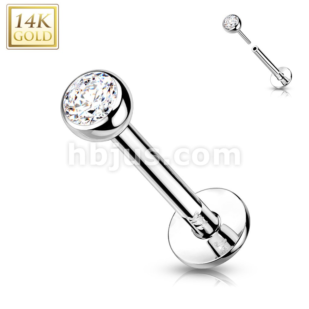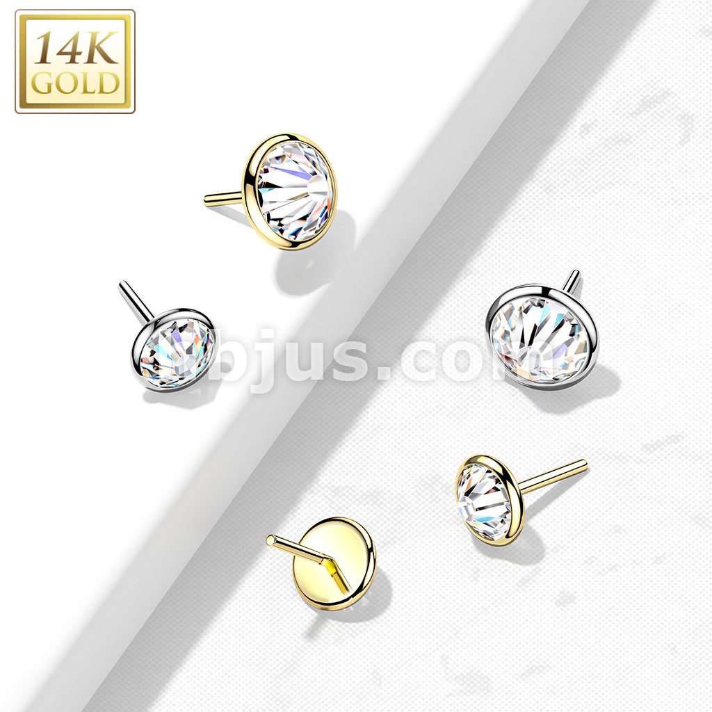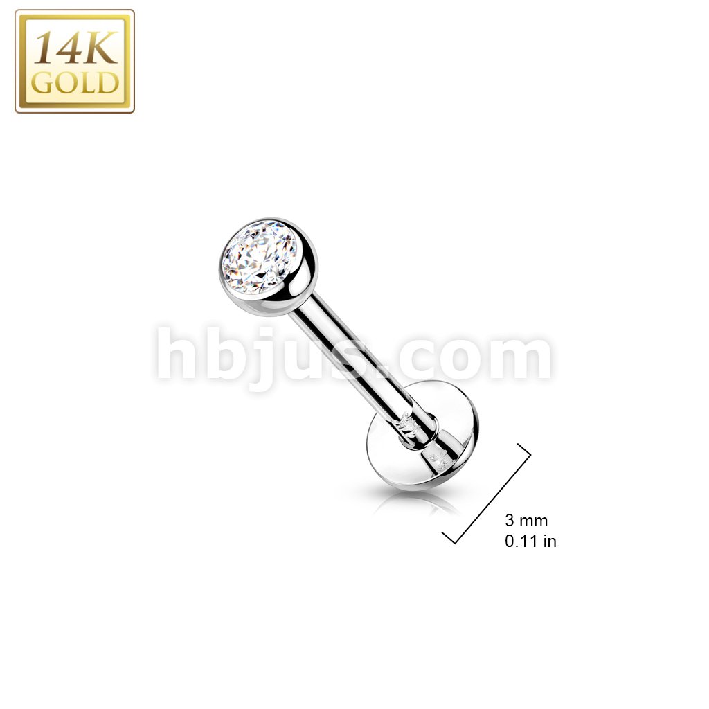 14K Gold Threadless Push-in Labret, Flat Back Studs With Bezel Set CZ Top for Cartilage, Monroe and More