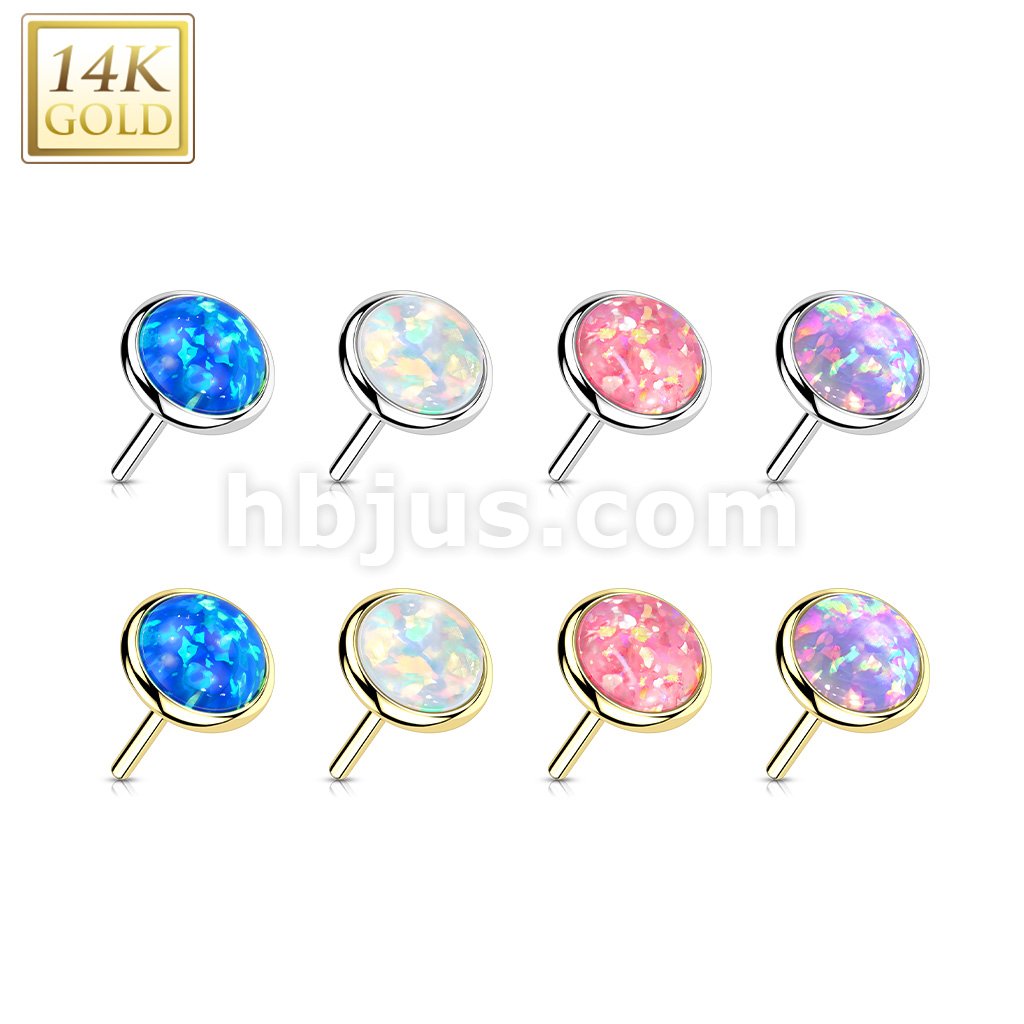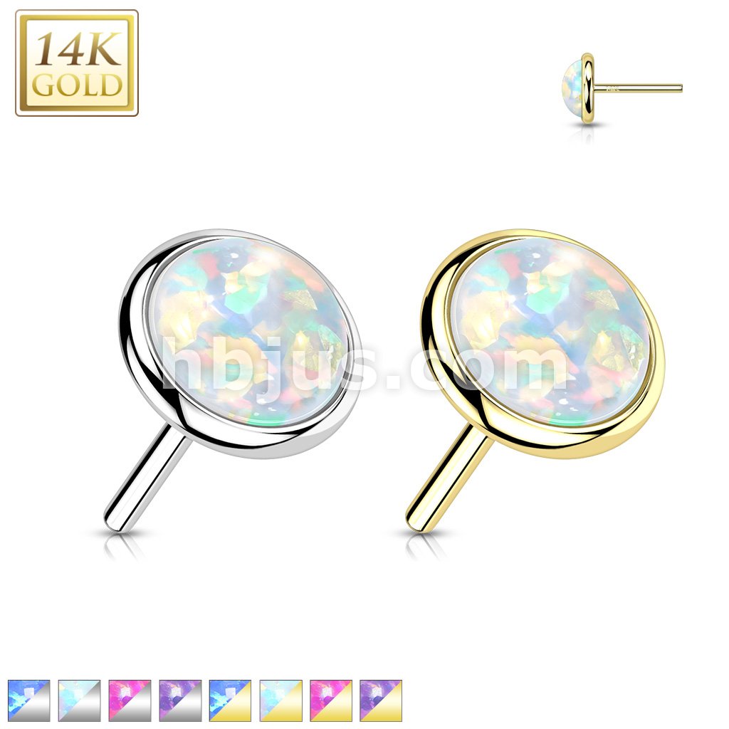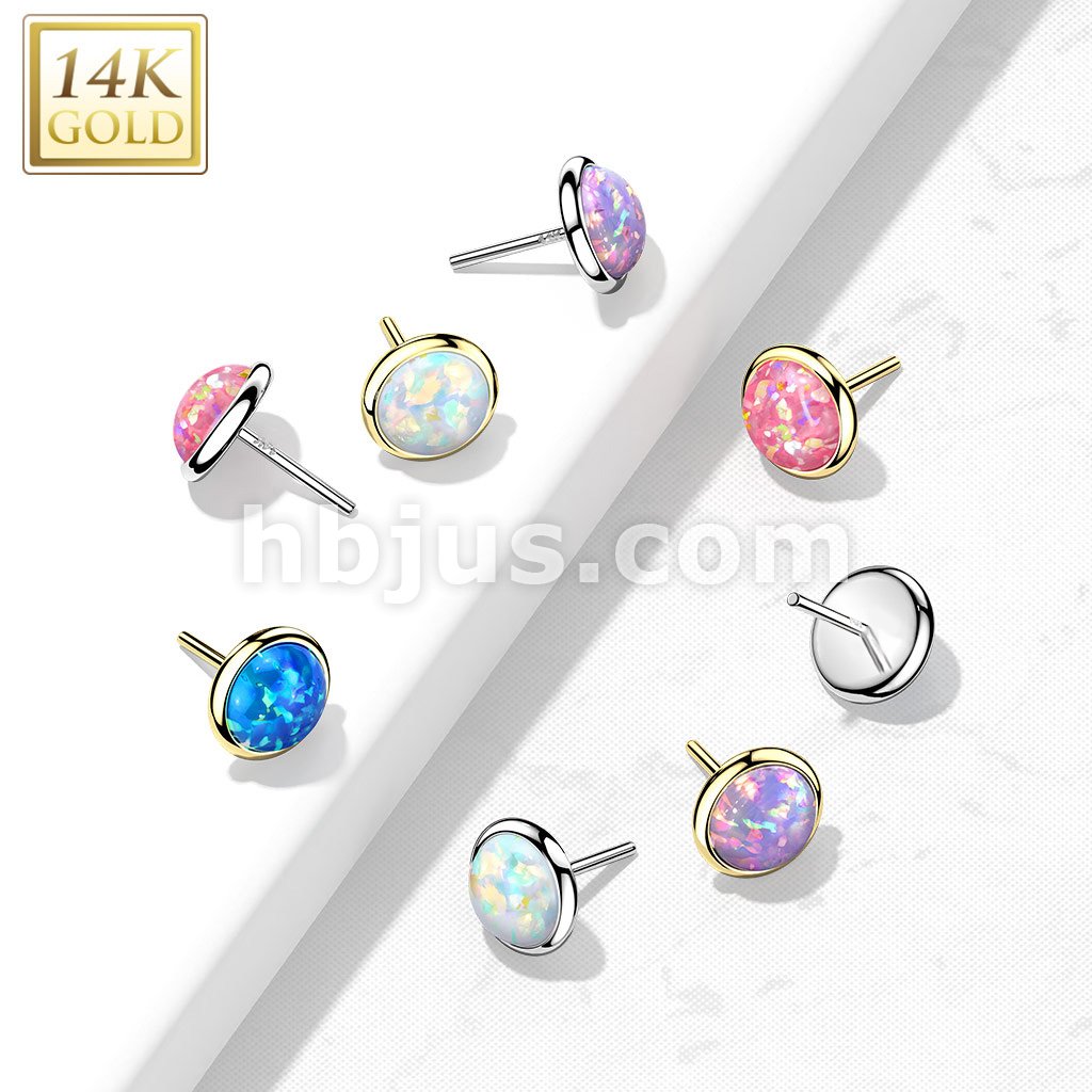 14K Gold Threadless Push In Flat Opal Top