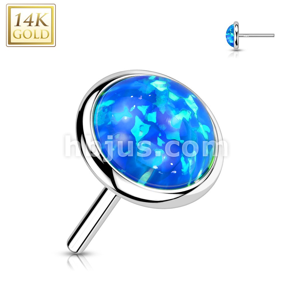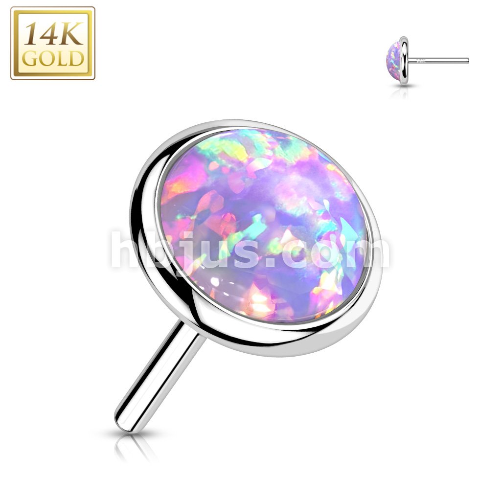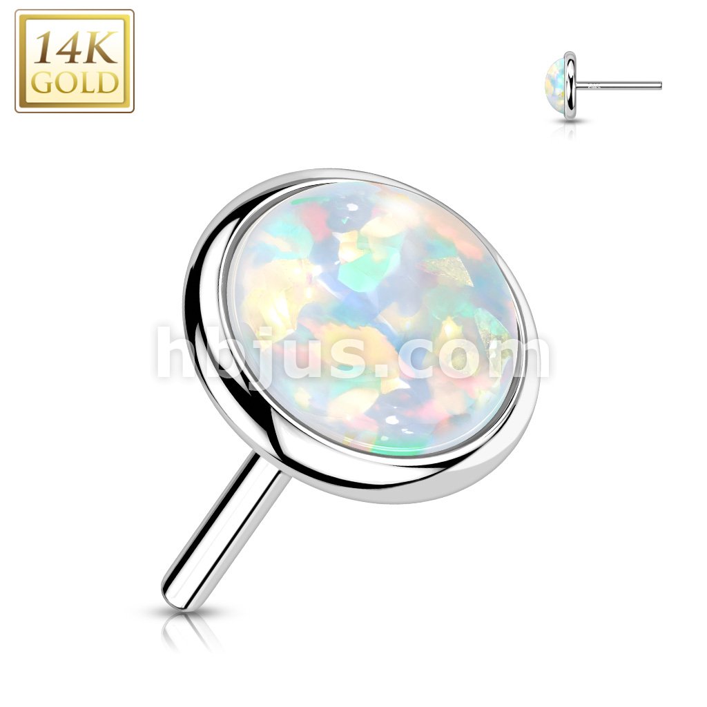 14K Gold Threadless Push In Flat Opal Top