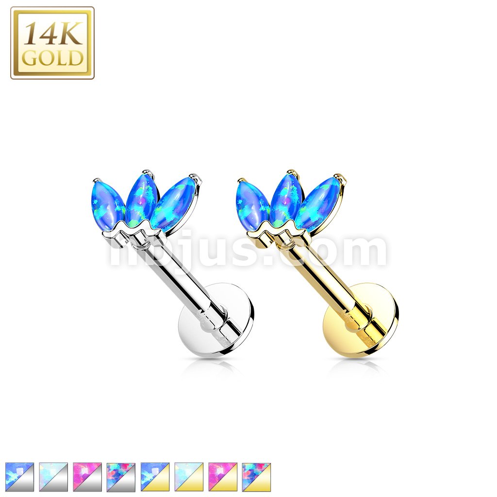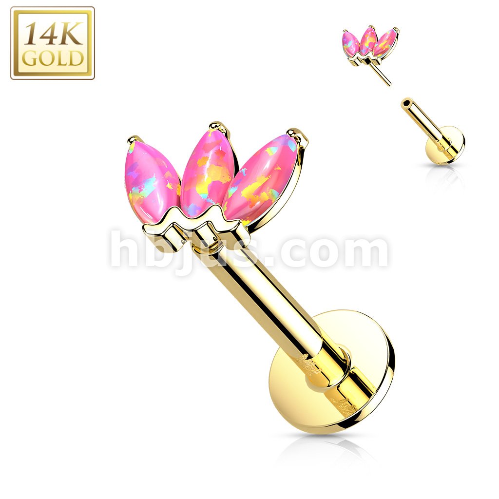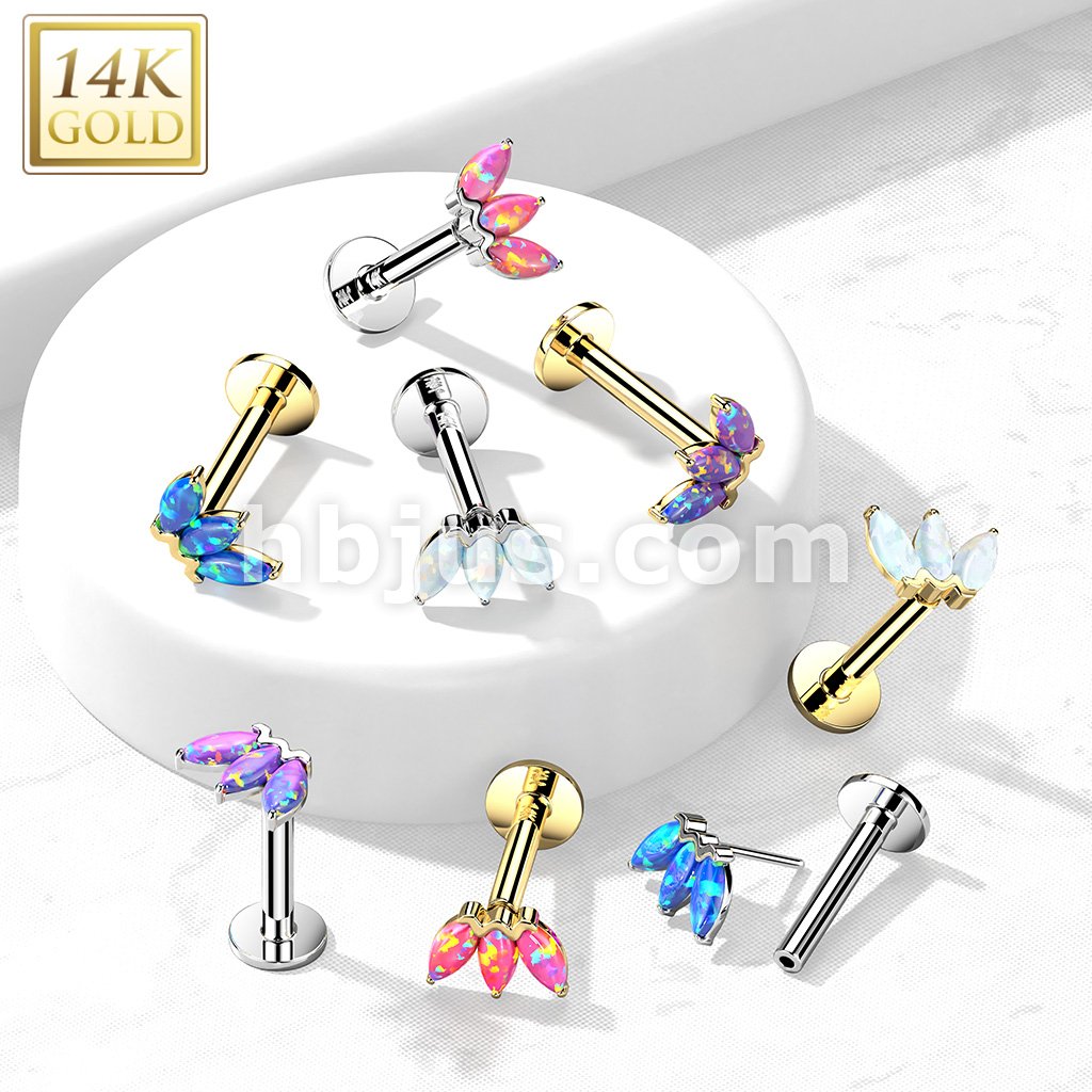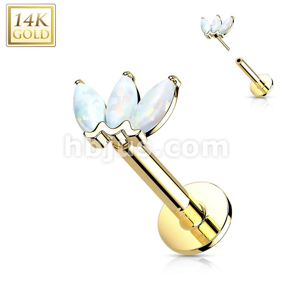 14K Gold Threadless Labret/Flat Back Stud with 3-Marquise Opa Top
