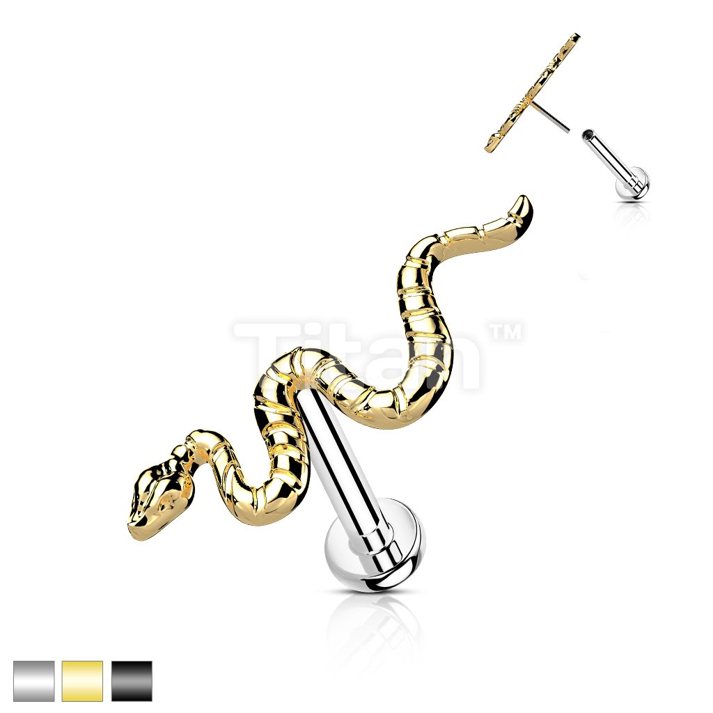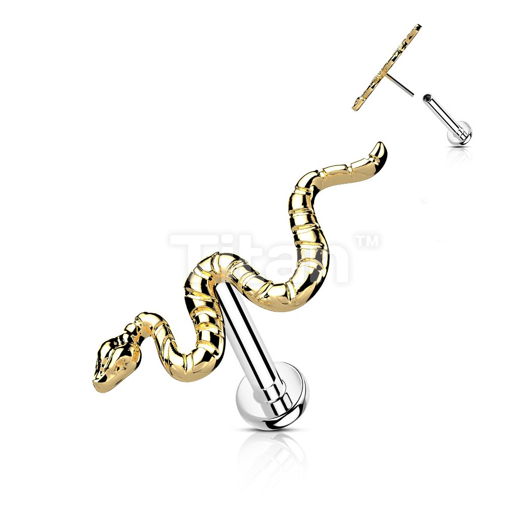 Implant Grade Titanium Threadless Push In Labret With Snake Top
