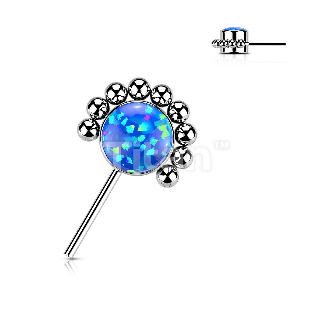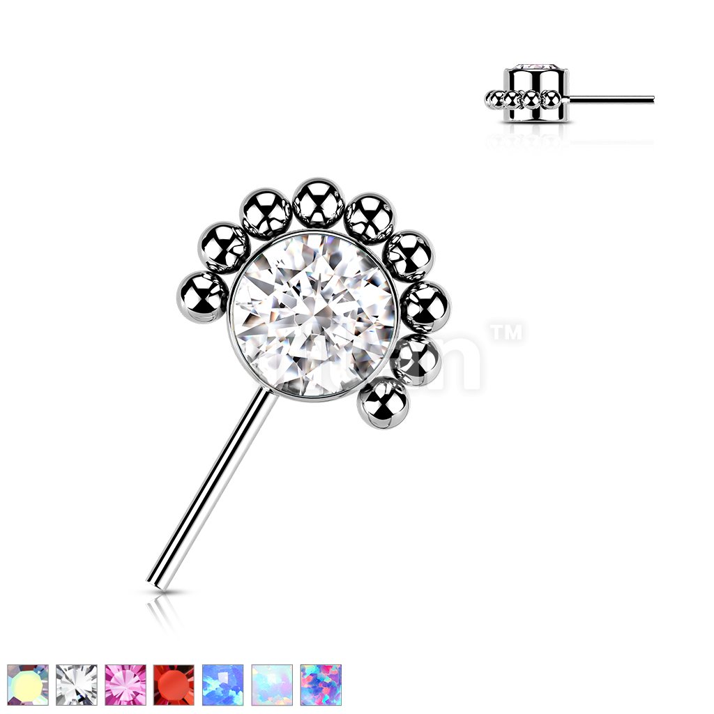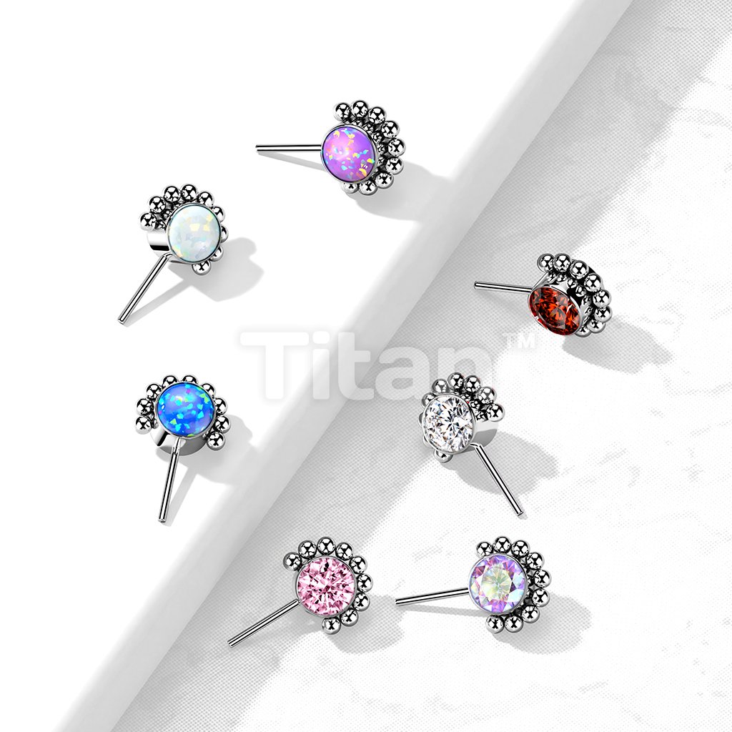Implant Grade Titanium Threadless Push In Forward Facing Bezel Set CZ or Opal With Beaded Ball Edge