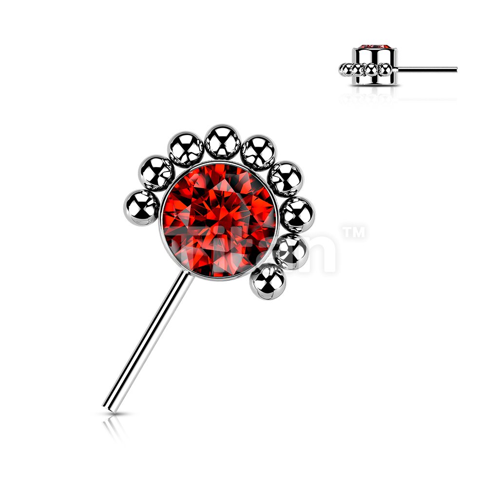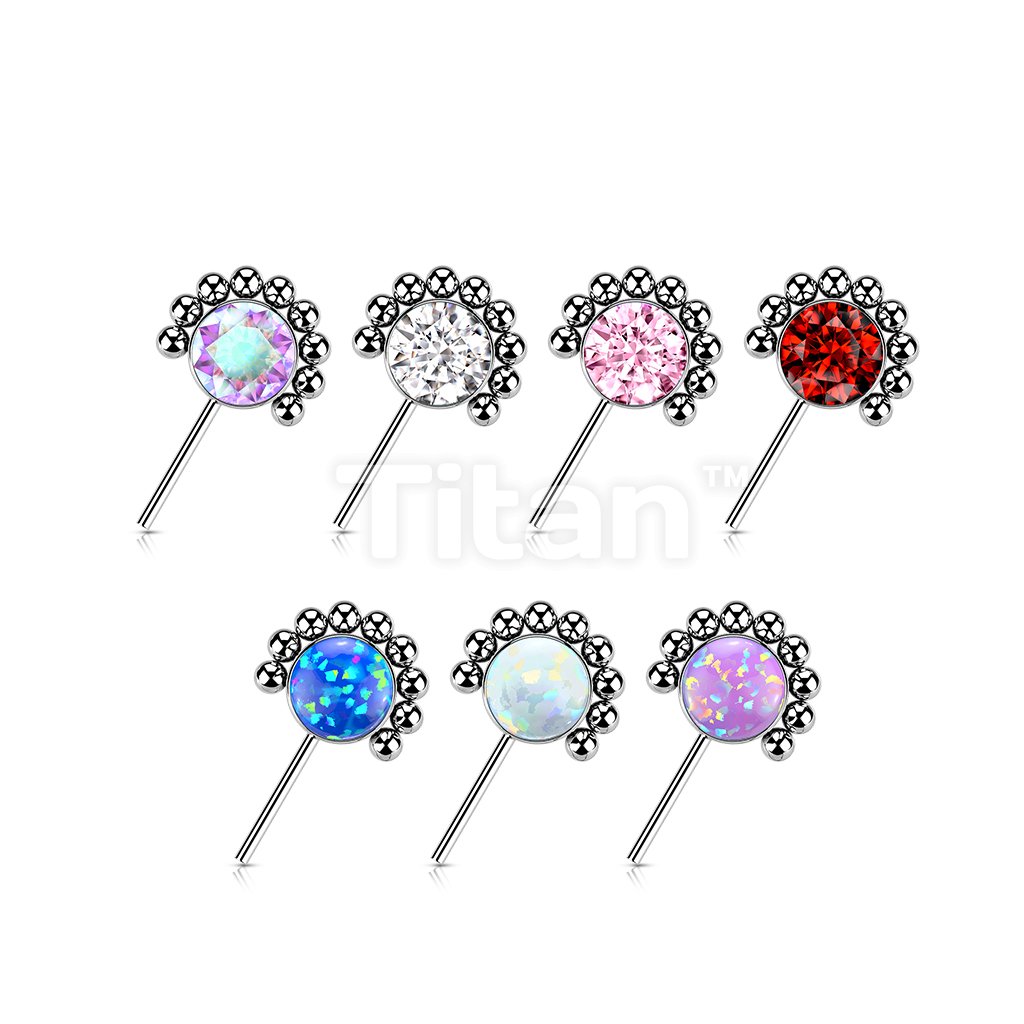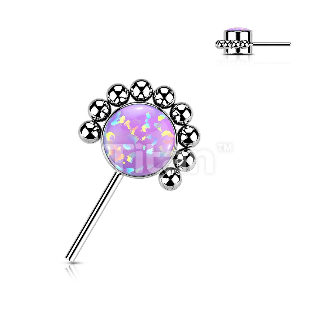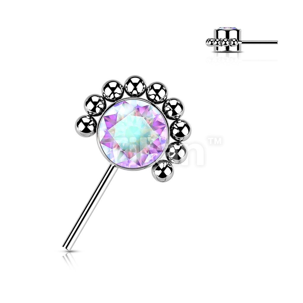 Implant Grade Titanium Threadless Push In Forward Facing Bezel Set CZ or Opal With Beaded Ball Edge