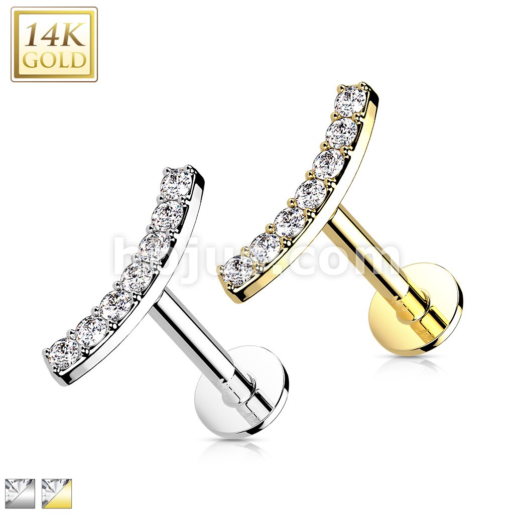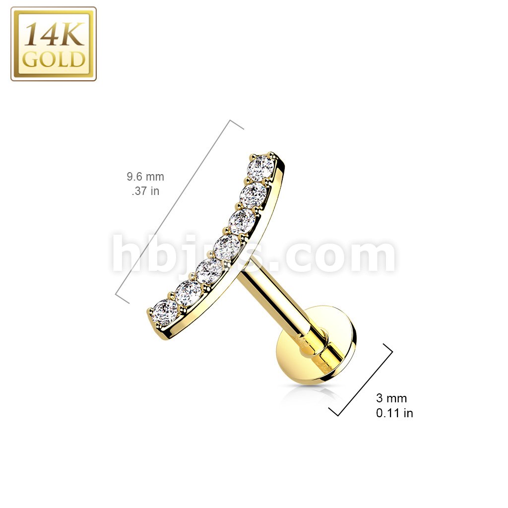 14K Gold Threadless Labret/Flat Back Stud with CZ Paved CurvTop