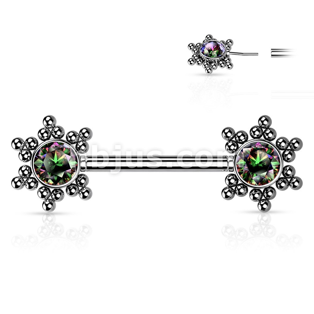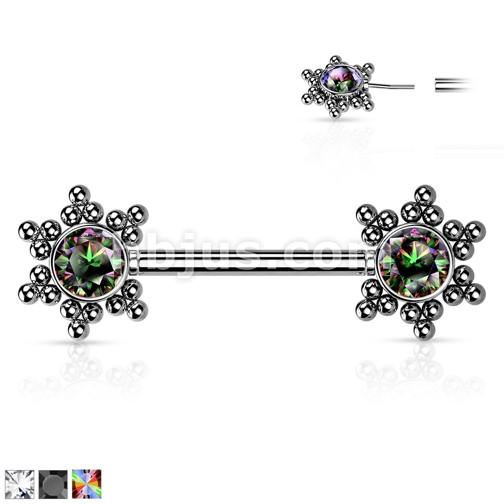 316L Surgical Steel Threadless Push In Nipple Barbell with CZ Center Star Cluster On Each Side